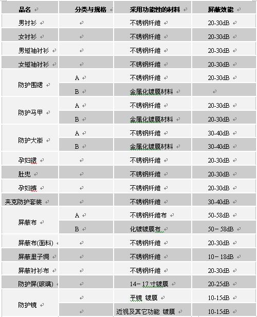 3 常用電磁輻射個體防護(hù)產(chǎn)品